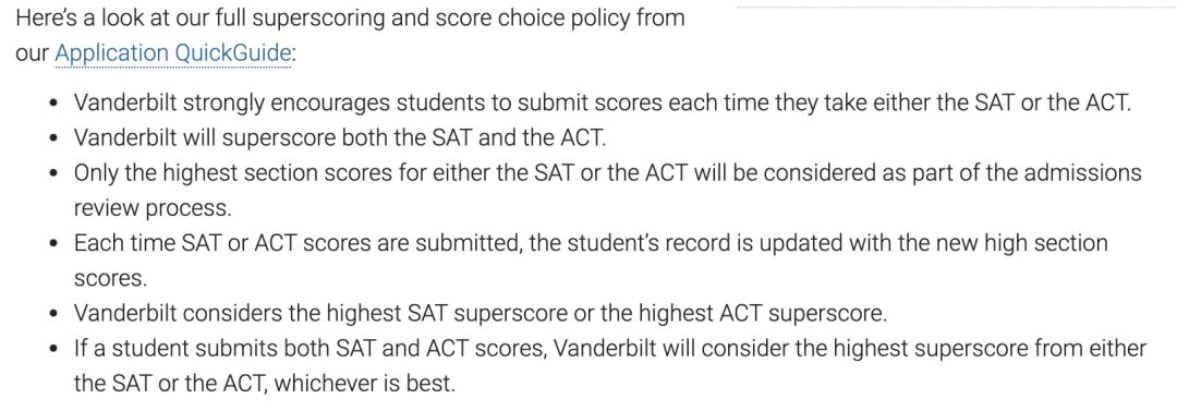 前兩周,范德堡大學宣布2020申請將接受ACT拼分。對此,范德堡大學也做出了更詳細的解釋: