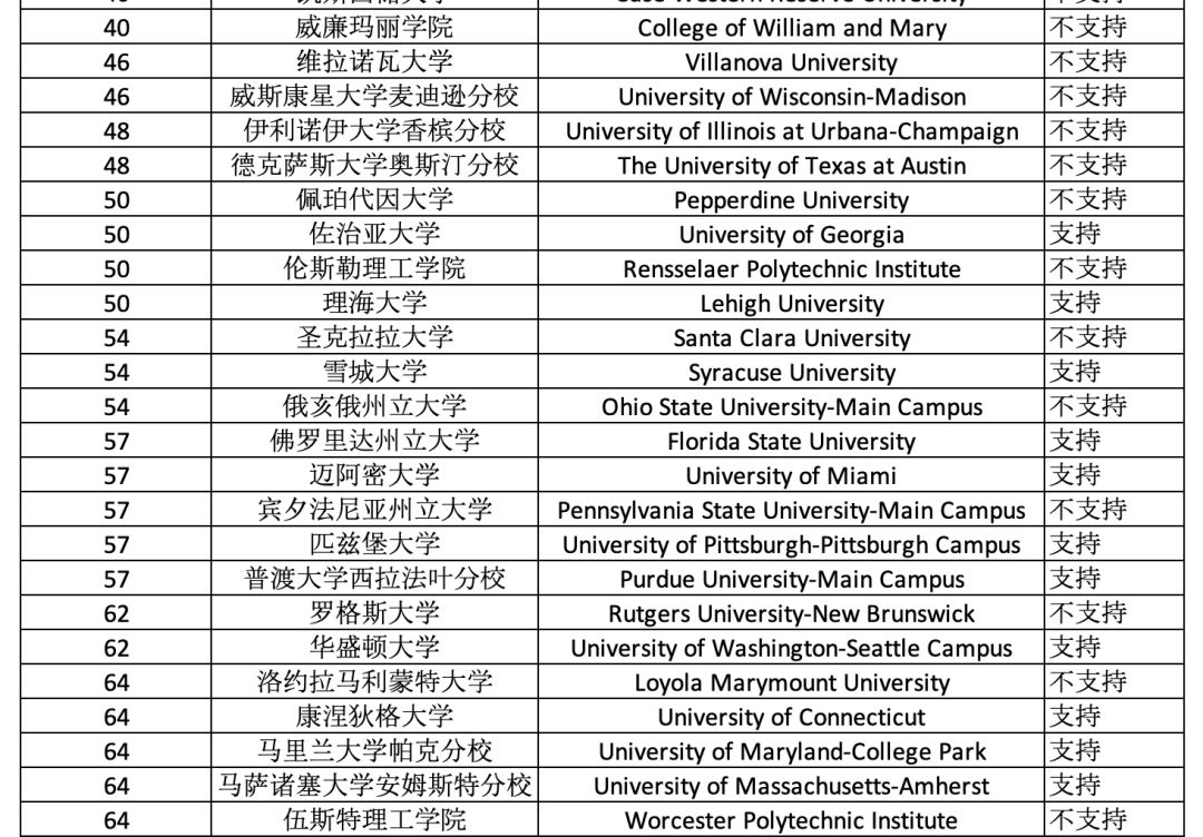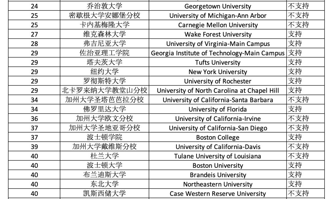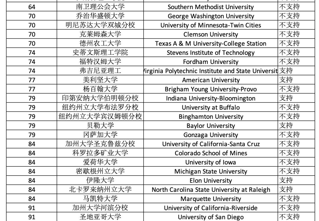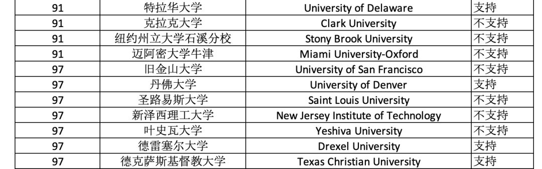 接受拼分成績的TOP100美國院校