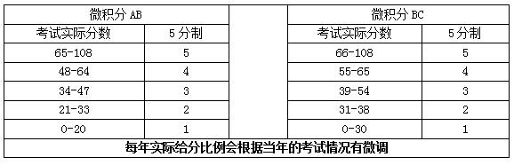 AP微積分BC和AP微積分AB兩門考試滿分都是108,卷面分與5分制的兌換每年劃分的分數區間都不一樣,但一般來說,108分超過70就可以得5分,大致就是100分考得60分,還是比較寬松的。由于自由問答題部分比選擇題部分難,因此選擇題的錯誤個數要有一定控制。一般來說,選擇題錯誤需控制在15題以內,可以拿5分,但是為了確保高分,我們建議以5分為目標的同學,選擇題需控制在10道題以內。從以往的教學和考生經歷來看,中國學生得5分的概率在70%以上,3分及以下的成績相當罕見。