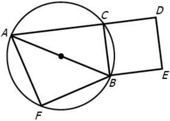 1. AB is the diameter of the circle. If AF=BF= 3√2,and AC=5, what is the area of square BCDE?