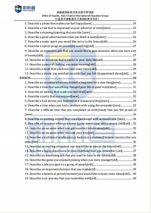 摘要:新航道根據歷史換題情況以及近一年的口語出題趨勢,分析預測了 2023年9-12月份可能出現的新題,為了方便9月-12月初考口語的烤鴨備考。這份預測,包含9月-12月可能會更新的新題以及預計9-12月會考到的舊題,后續還會更新整個題庫。