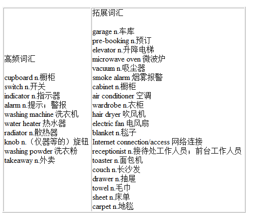 15. E 定位題干的 washing powder,錄音中And if you want to do some washing, there’s some washing powder ... 出現題干中的定位詞,后面傳出的 ... by the back door. There’s a kind of shelf ...。兩部分中的信息提到了選項E中的shelf和back door。后面的 ... in a large blue box可能會干擾考生誤選A,但是錄音井沒有提到A選項中的washing machine。