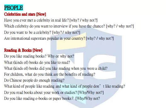 在Part 2話題中,有舊題也有部分新題,下面是每個主題的部分話題,共同學們參考。