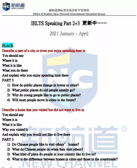 三場開始結束,口語題庫基本穩定,今天趕快跟隨新航道小編來看看2021開年1-4月的最新口語話題庫吧!