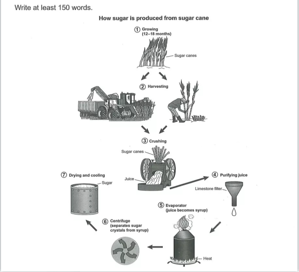 In light of those steps, making sugar from sugar cane is a job of complexity, not only because of the many steps but also because of the need to use different pieces of equipment in each step. 這樣的結(jié)尾段內(nèi)容有一定的難度,但是可以學(xué)會。首先重申一下圖的全貌,然后就這個圖而言,可以解釋一下是因為步驟多,并且每個步驟都有不一樣的器械。這個套路是可以學(xué)會的,要學(xué)。