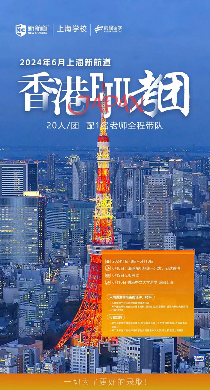 今天新航道小編給大家帶來了,2024年6月香港EJU考團,具體介紹如下,香港EJU考團如有疑問請咨詢在線工作人員哦,另外,新航道EJU線下開班啦,歡迎咨詢!