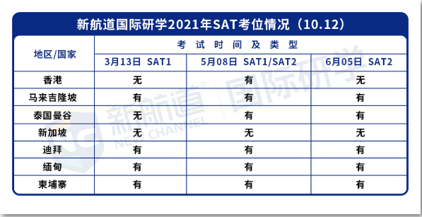 新航道組織了多場SAT考團,想要了解2021年SAT考團,點擊下面圖片,了解更多SAT海外考團信息。
