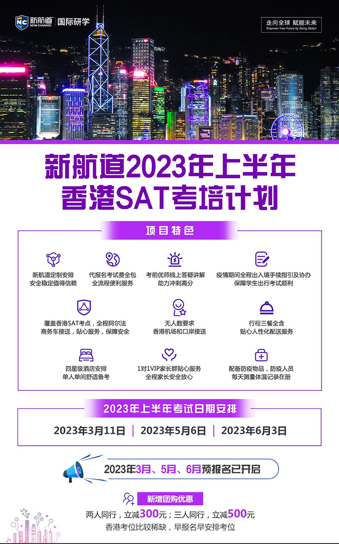 摘要:2023年新航道3月11日/5月6日/6月3日-香港 SAT考培計劃,報名中.....